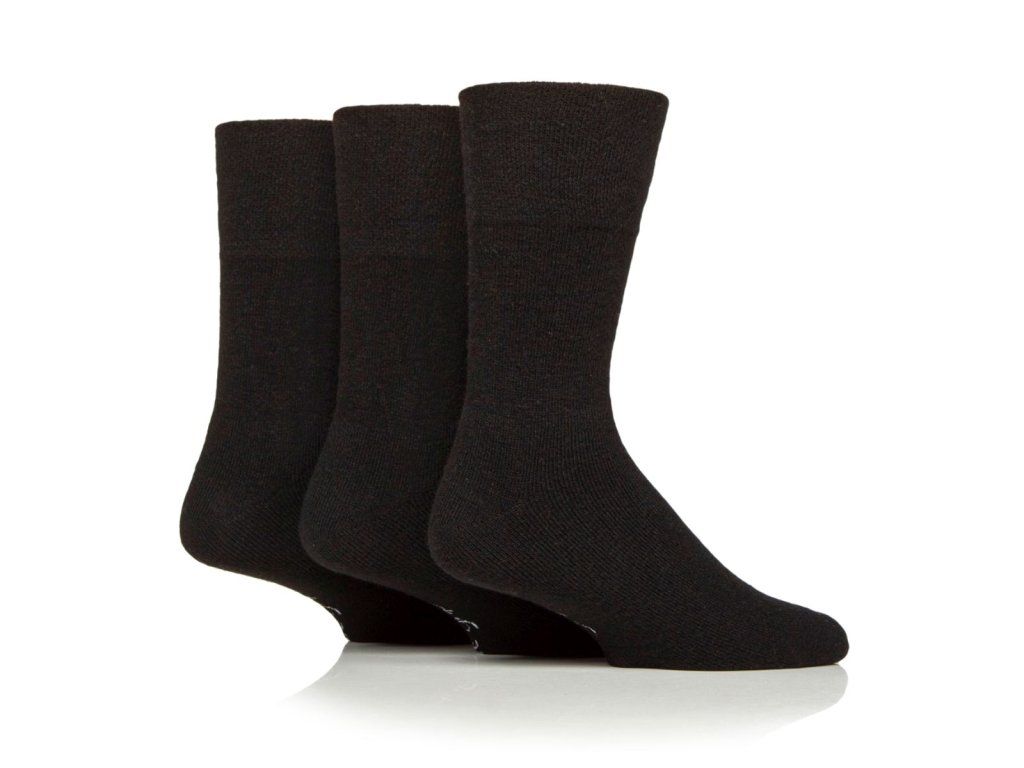 3 páry pánske ponožky Gentle Grip VLNENÉ bez gumičiek s froté chodidlom ČIERNE