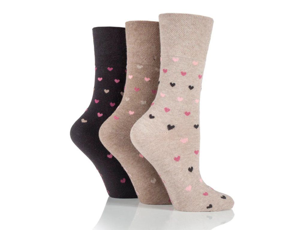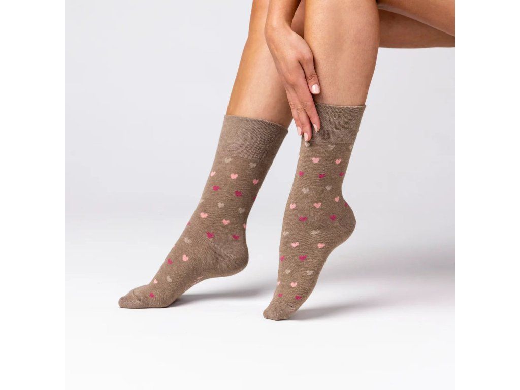 Dámske 3 pára módne ponožky Gentle Grip BROWN HEARTS bez gumičiek