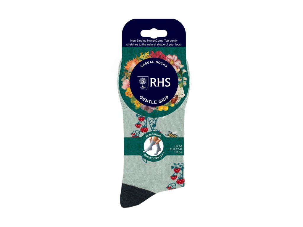 Dámske bambus ponožky RHS Gentle Grip sú súčasťou spolupráce s Kráľovskou záhradníckou spoločnosťou (RHS - Royal Horticultural Society ), inšpirovanej zbierkami RHS Lindley, najväčšou zbierkou botanického umenia na svete, rozžiaria každý pochmúrny deň. Jemné kvety, zábavné a farebné potlače a kontrastné odtiene robia z týchto nových ponožiek pripomienku krásneho letného dňa stráveného v záhrade. Ak sa chcete dozvedieť viac o spolupráci značky Gentle Grip s RHS, kliknite > SEM.