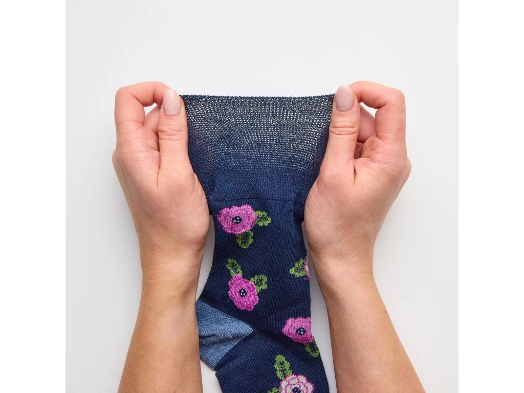 - dizajn: kvetinový vzor, tmavý podklad ponožiek
