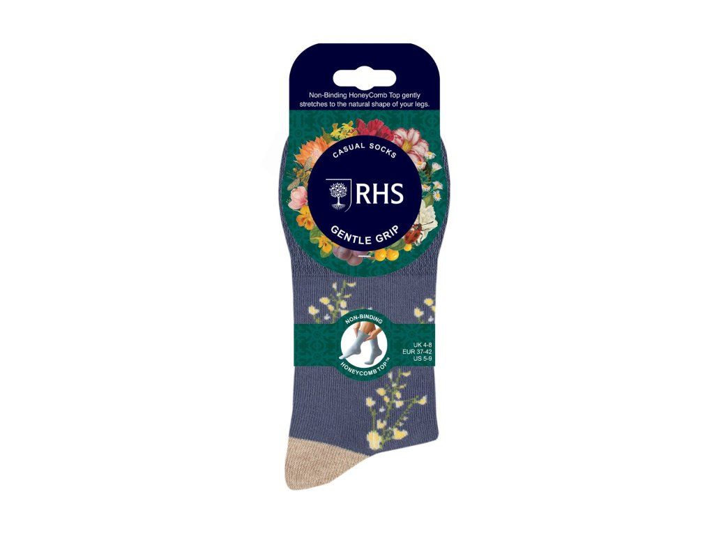 Dámske bavlnené ponožky RHS Gentle Grip sú súčasťou spolupráce s Kráľovskou záhradníckou spoločnosťou (RHS - Royal Horticultural Society ), inšpirovanej zbierkami RHS Lindley, najväčšou zbierkou botanického umenia na svete, rozžiaria každý pochmúrny deň. Jemné kvety, zábavné a farebné potlače a kontrastné odtiene robia z týchto nových ponožiek pripomienku krásneho letného dňa stráveného v záhrade. Ak sa chcete dozvedieť viac o spolupráci značky Gentle Grip s RHS, kliknite > SEM.