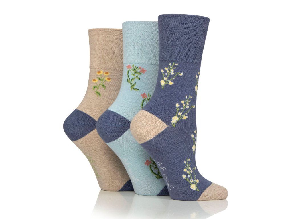 Dámske 3 páry bavlnené ponožky RHS Gentle Grip JARNÉ KVIETKY