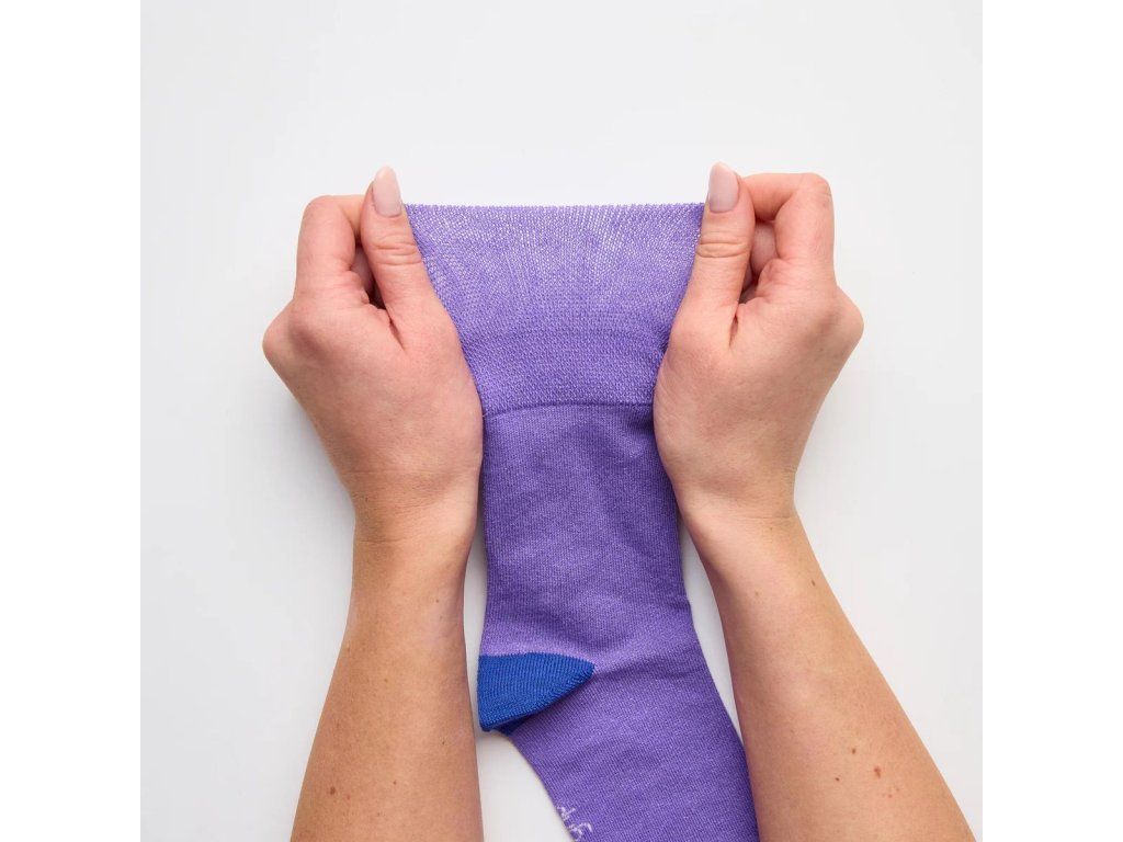 Dámske ponožky so širokým, nesťahujúcim lemom a voľnou konštrukciou po celej dĺžke. Kopírujú prirodzený tvar a krivky vašich nôh, netlačia a nezarezávajú sa do pokožky. Majú ploché švy na špičke prstov spájané retiazkovou metódou bez zošitia. Sú vyrobené z jemnej bavlny príjemnej na dotyk, poskytujúcej sviežosť, sucho a pohodlie pre vaše nohy. Vhodné pre ľudí so slabým prekrvením nôh, hrubšími alebo opuchnutými nohami a diabetikov. Ponožky majú spevnenú pätu a špičku.