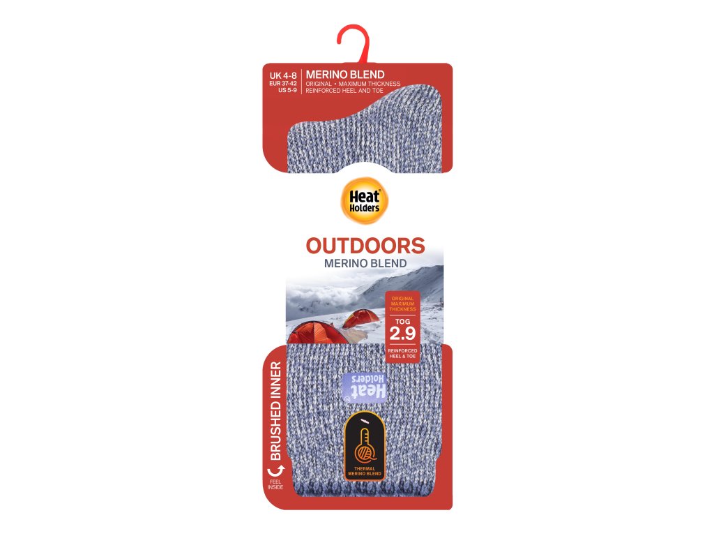 Tieto termo ponožky Heat Holders® Merino Wool majú hodnotenie *TOG 2,9, vďaka čomu sú viac ako 8-krát teplejšie ako bežné bavlnené ponožky. Vnútro každej ponožky je intenzívne vyčesané, takže je nielen senzačne mäkké, ale zachytáva väčšie množstvo teplého vzduchu v blízkosti pokožky, čím ponožky lepšie a dlhšie izolujú a chránia chodidlá, udržujú nohy v teple počas najchladnejších dní. Zosilnená päta a špička poskytujú extra ochranu pri náročnom používaní. Skvelé pre outdoorové aktivity.