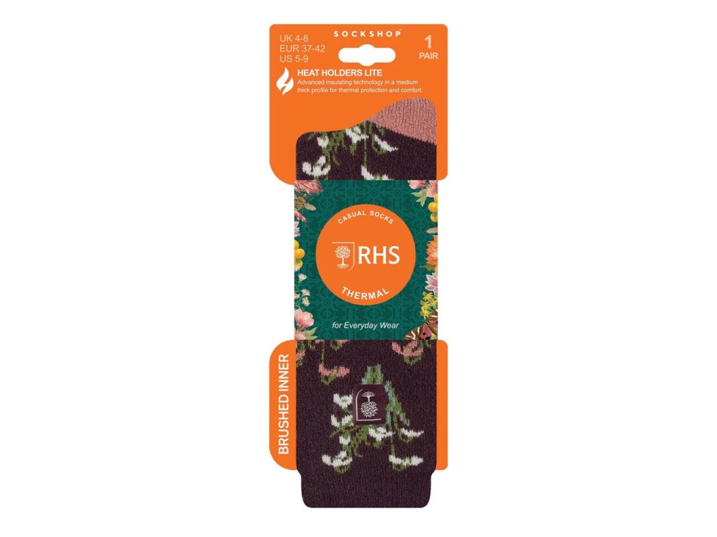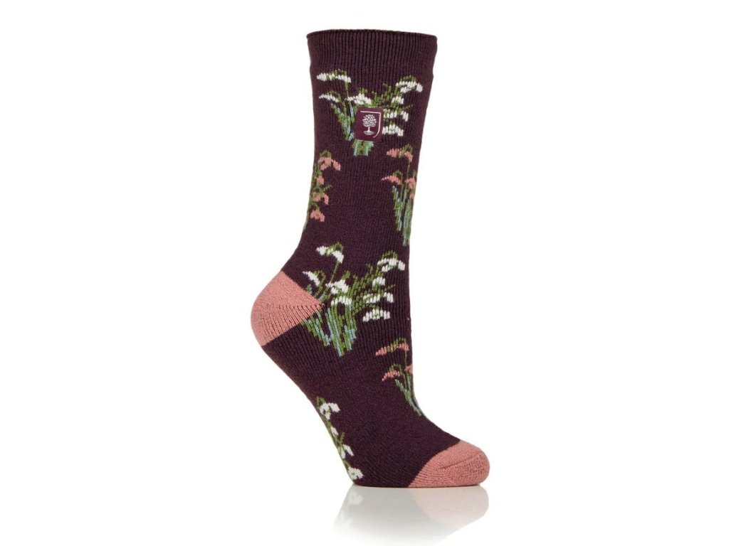 Dámske ponožky RHS Heat Holders Lite so vzorom bielych a ružových snežienok sú súčasťou kolekcie RHS, inšpirovanej ich kolekciou Lindley, najkvalitnejšou zbierkou botanického umenia na svete.