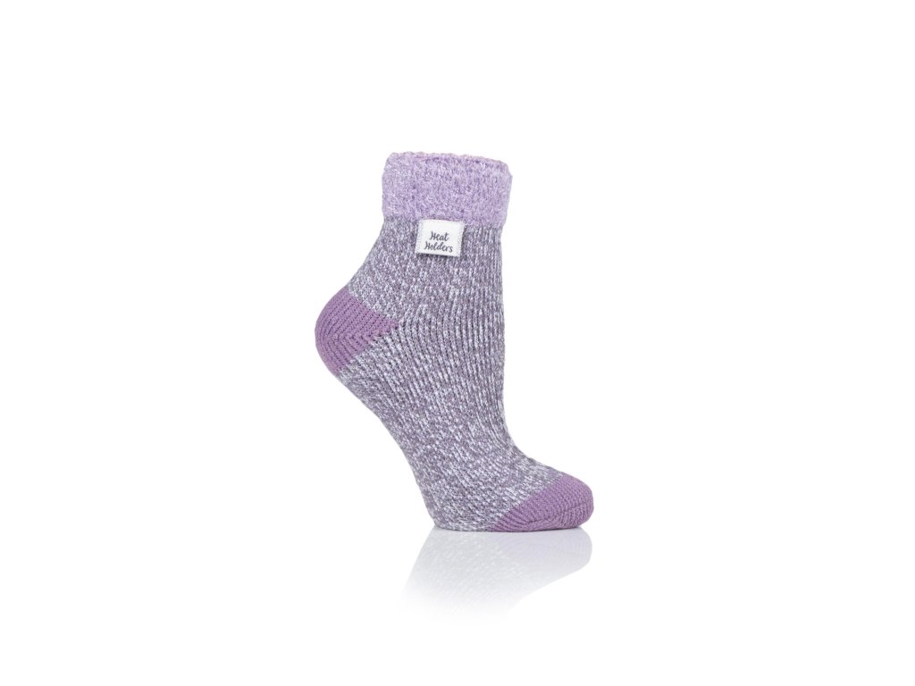 Dámske teplé termo ponožky Heat Holders SLEEP Feather Top Twist Grey v melíry šedej a ružovej farby s kontrastom ružovej päty a špičky