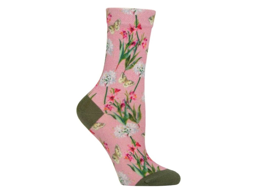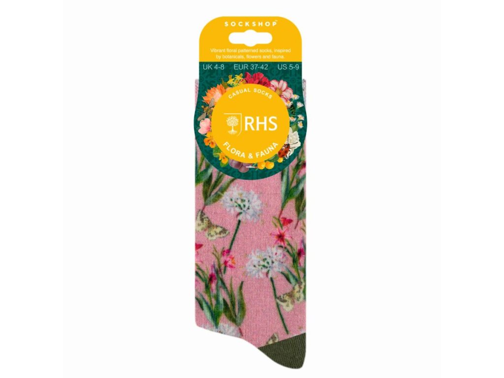 Inšpirované zbierkami RHS Lindley, najväčšou zbierkou botanického umenia na svete, si myslíme, že vzorované ponožky SOCKSHOP RHS Royal Horticultural Society patria medzi najbohatšie a najfarebnejšie dámske ponožky, aké môžete nájsť. Tieto krásne mäkké ponožky s okrúhlym výstrihom zdobia vzory od vtákov, motýľov a chrobáčikov až po ovocie a kvetinové prvky v akvarelových potlačiach, ktoré sa ovíjajú okolo nich. Iba päty a špičky sú hladké, v odtieňoch, ktoré kontrastujú s detailným umením.