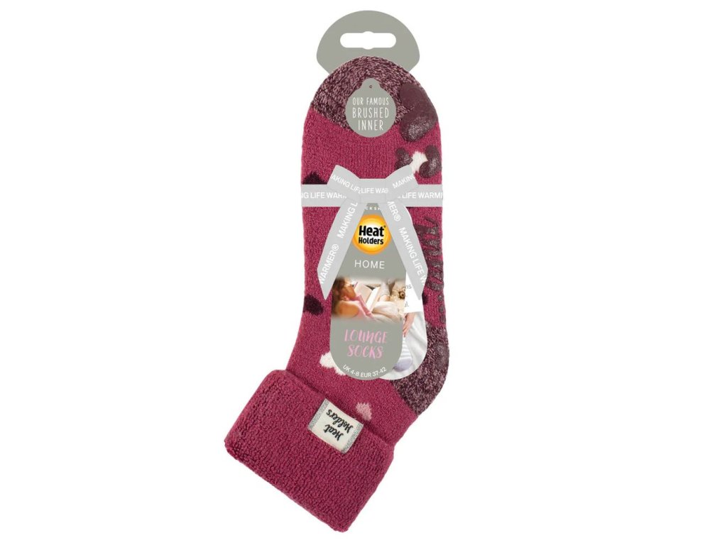 Heat Holders dámske LITE LOUNGE termo ponožky Ružové so srdiečkami