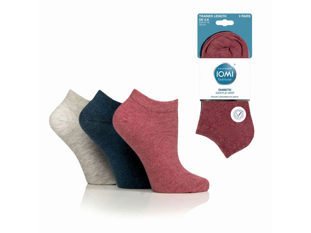 Dámske IOMI Diabetik Gentle Grip členkové ponožky KORALOVO ŠEDO MODROZELENÝ mix pre diabetikov a ľudí, ktorí majú radi viac pohodlia na nohách. Členkové ponožky s voľným lemom, ktorý sa nezarezáva do pokožky a nezanecháva nepríjemné, bolestivé otlačky, voľnou konštrukciou ktorá kopíruje tvar nôh bez silného sťahovania a plochou špičkou, ktorá zabraňuje dráždeniu a oderom. Veľmi obľúbený a predávaný produkt.
