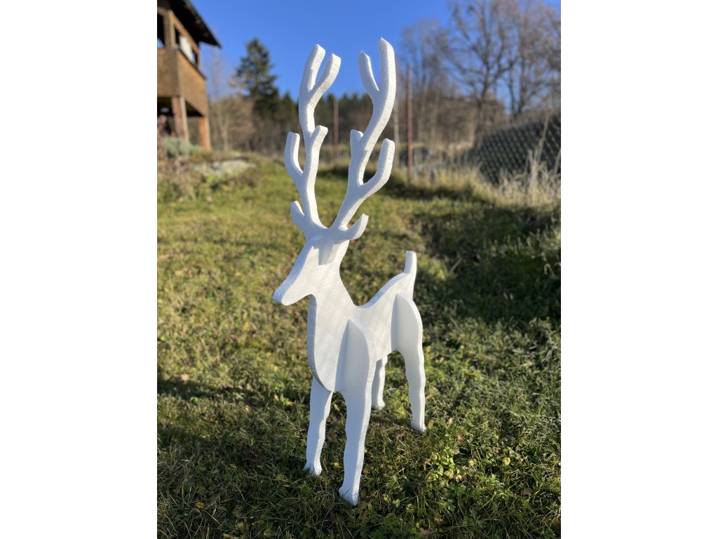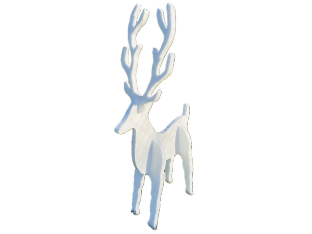 - dodávame v rozloženom stave na 4 samostatné časti - telo, parohy, predné nohy, zadné nohy. Poskladáte ho jednoducho zasunutím jednej časti do druhej do vyrezaných zárezov.
