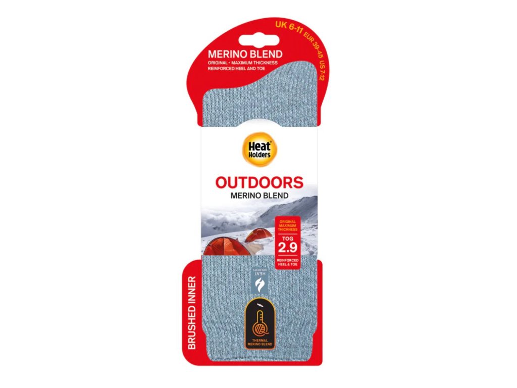 Ponožky vyrobené zo zmesi Merino vlny, jedinečného a patentovaného Heat Holders® procesu a zosilnenej päty a špičky. Pre tých, ktorí milujú tradičný pocit „pravých“ vlnených ponožiek, sa skombinovali vlastnosti prírodnej vlny zadržiavať teplo a odvádzať vlhkosť, s modernými vláknami a inovatívnou technológiou pletenia, aby sa vytvorili vysoko výkonné ponožky pre maximálne teplo, hrúbku a odolnosť. Tieto termo ponožky Heat Holders® Merino Wool majú hodnotenie *TOG 2,9, vďaka čomu sú viac ako 8-krát teplejšie ako bežné bavlnené ponožky. Zosilnená päta a špička poskytujú extra ochranu pri náročnom používaní. Skvelé pre outdoorové aktivity.
