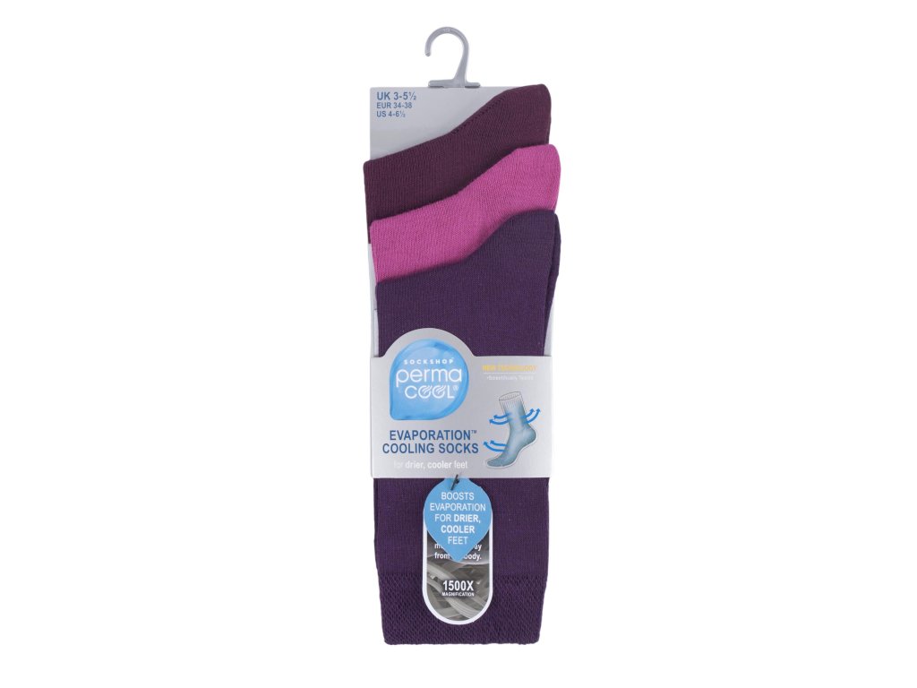 PermaCool 3 páry ponožiek s chladivým efektom FIALOVÉ