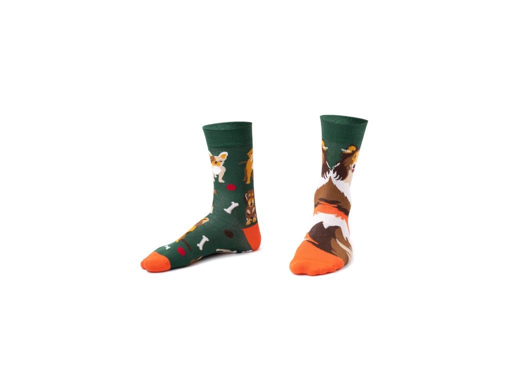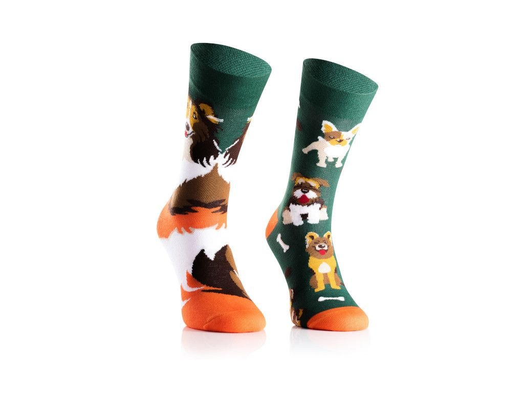 Veselé farebné ponožky TODO Socks Dogs - Psíky rôznych plemien sa predvádzajú na každej nohe a pútajú pozornosť každého z nás.