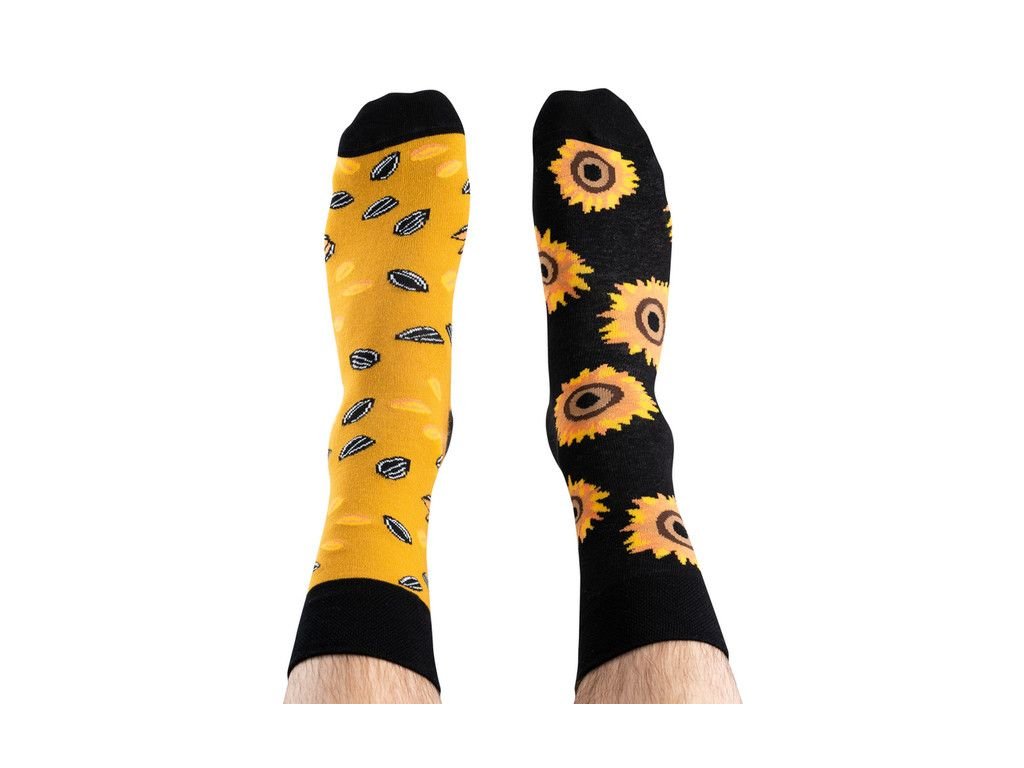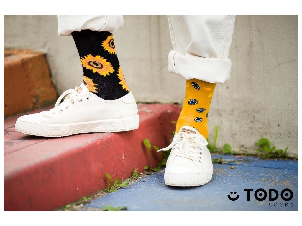 Veselé, farebné ponožky značky TODO SOCKS - model Sunflowers - Slnečnice, kvety inšpirujúce mnohých umelcov otáčajúce sa za slnkom.